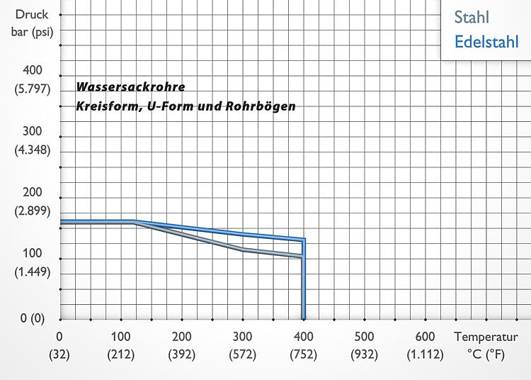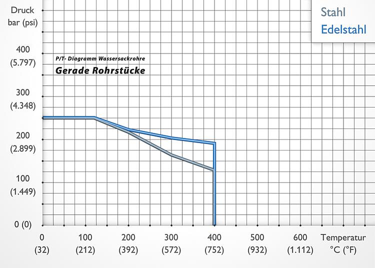 Max. allowable (Working) Pressure (PS) please see below Pressure / Temperature Rating which is based on the standard pipe dimension.